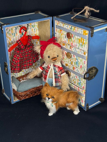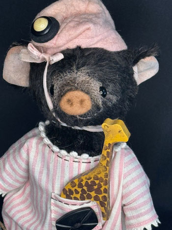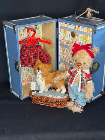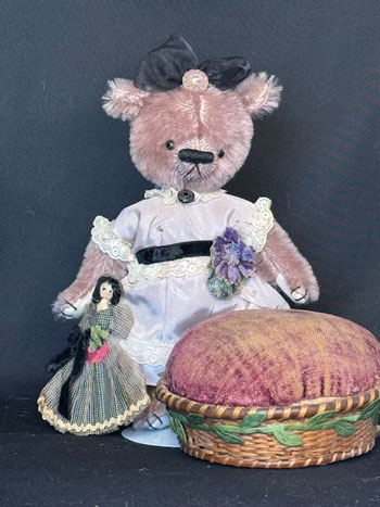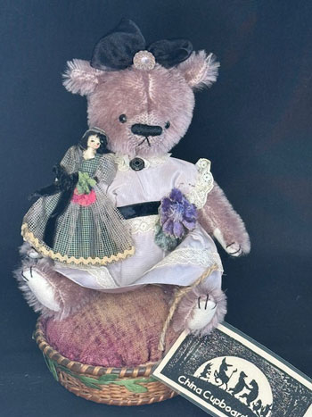 China Cupboard Bears grew out of my love of Antique dolls and Costuming and was a natural extension of my background in Fashion Design. I am constantly amazed at how my skills from my variety of jobs have contributed to what I do. From my first job sewing clothes for dogs to my years as a Florist, stint in the Bridal Market, three years as a Mascot Costume Designer and 30 plus years as a Mother of 4 which taught me Time Management!
