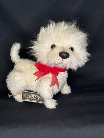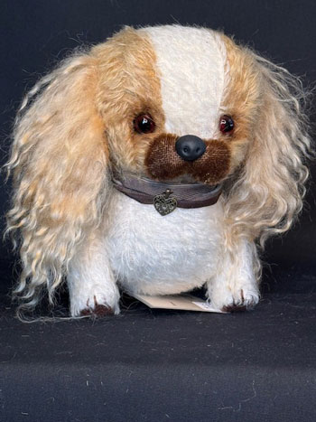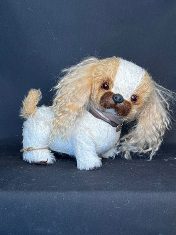 Another pocket pet (or good size for dolly pets), princess is a white and caramel Spaniel with curly long mohair ears and dark brown muzzle.